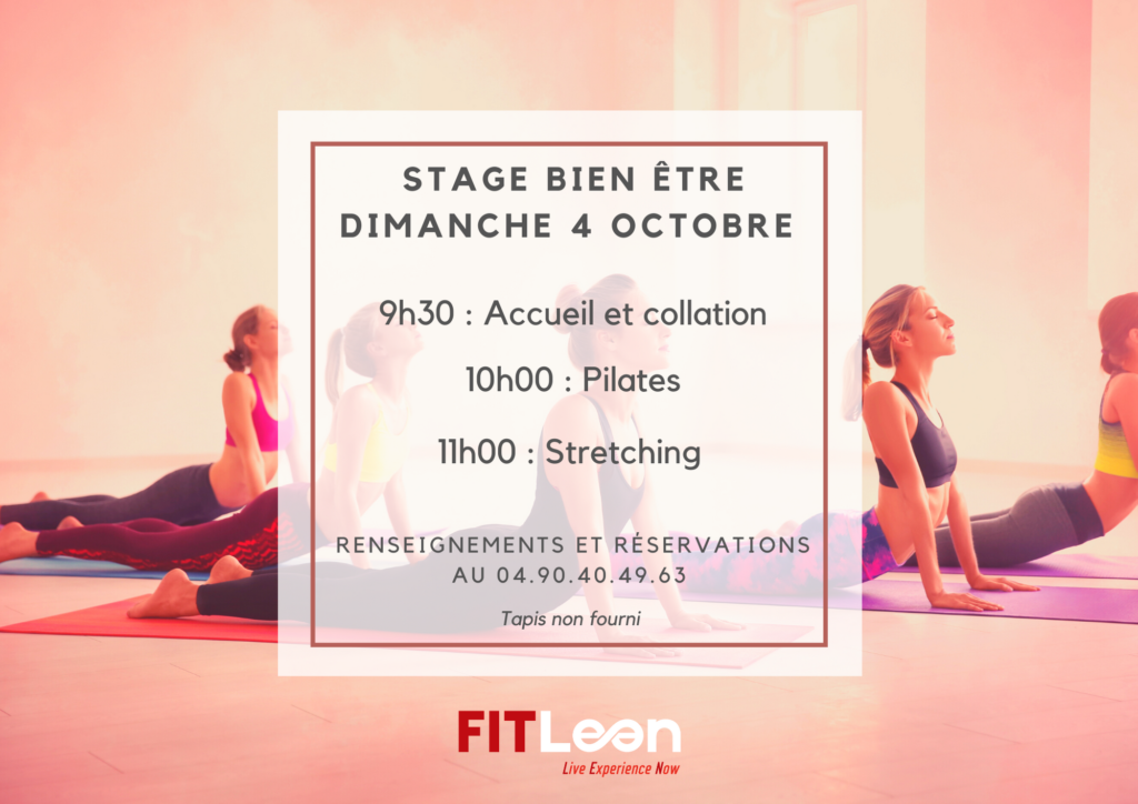 Rémy vous propose une matinée sous le signe de la Détente et du Bien être le dimanche 4 octobre. Rendez-vous à partir de 9h30 au club pour une petite collation suivie de 2h de cours (Pilates et Stretching). Renseignements, réservations et inscriptions au 04.90.40.49.63 ou à l’accueil du club. Stage ouvert à tous (adhérents et […]